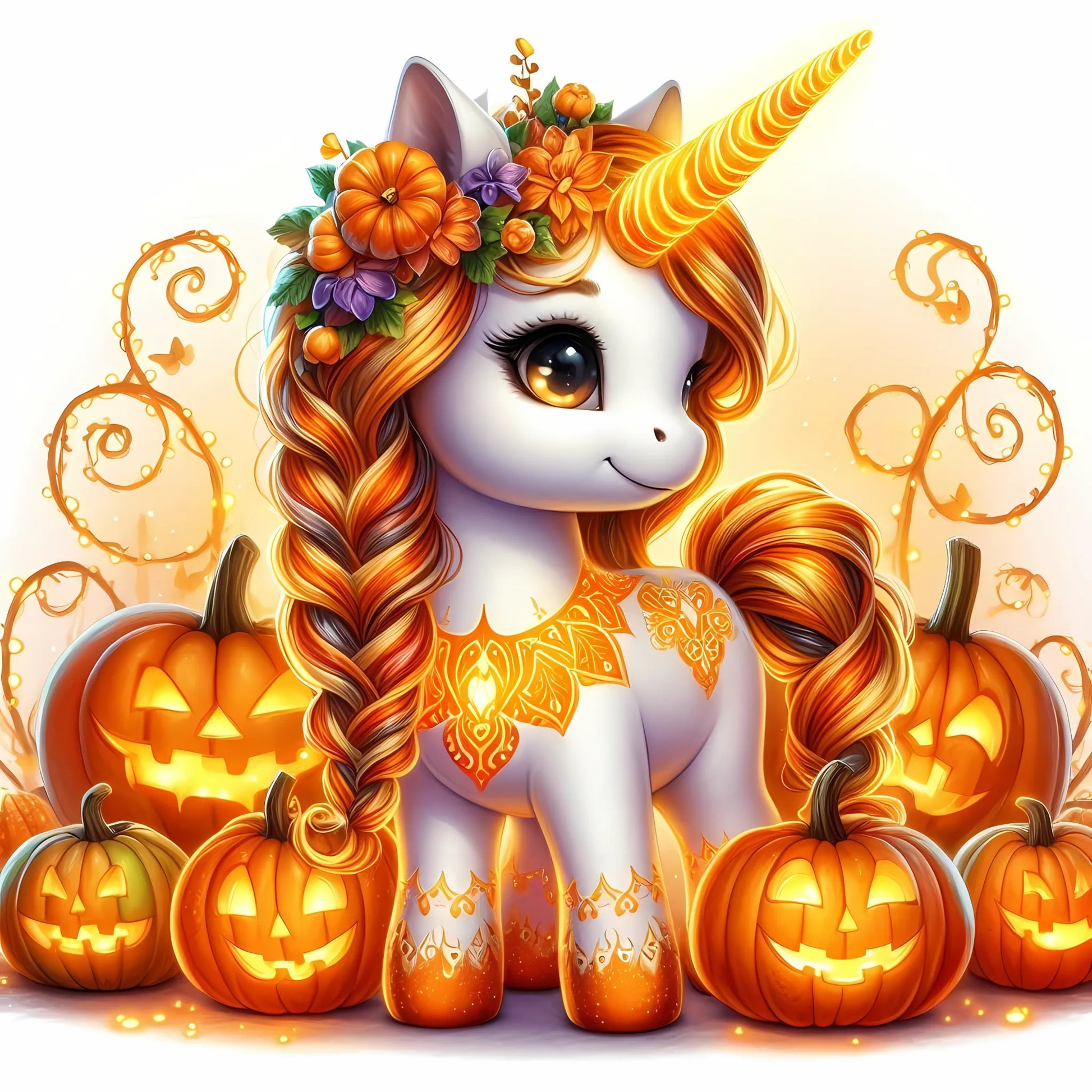Auktion - Bügelbild - Einhorn Kürbis 3 - 15cm