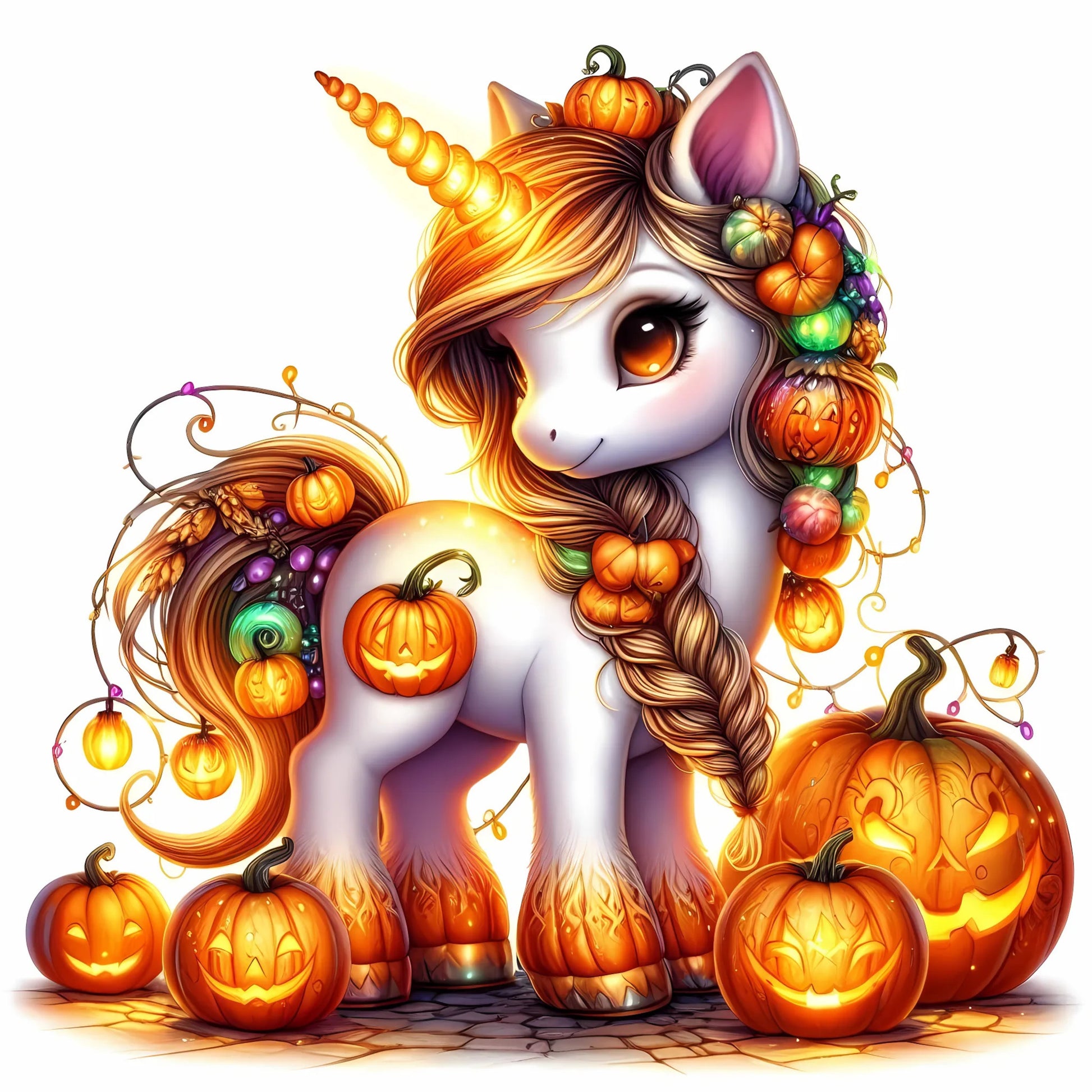 Auktion - Bügelbild - Einhorn Kürbis 4 - 15cm