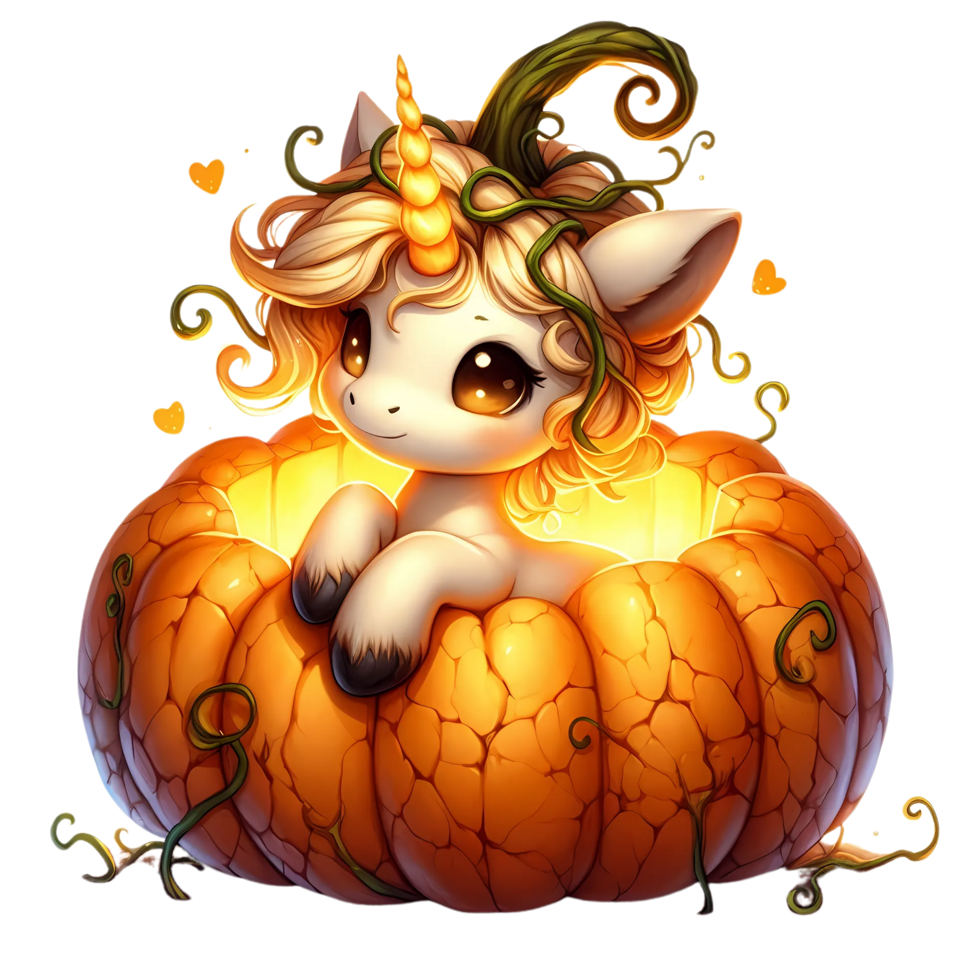 Auktion - Bügelbild - Einhorn Kürbis 7 - 15cm