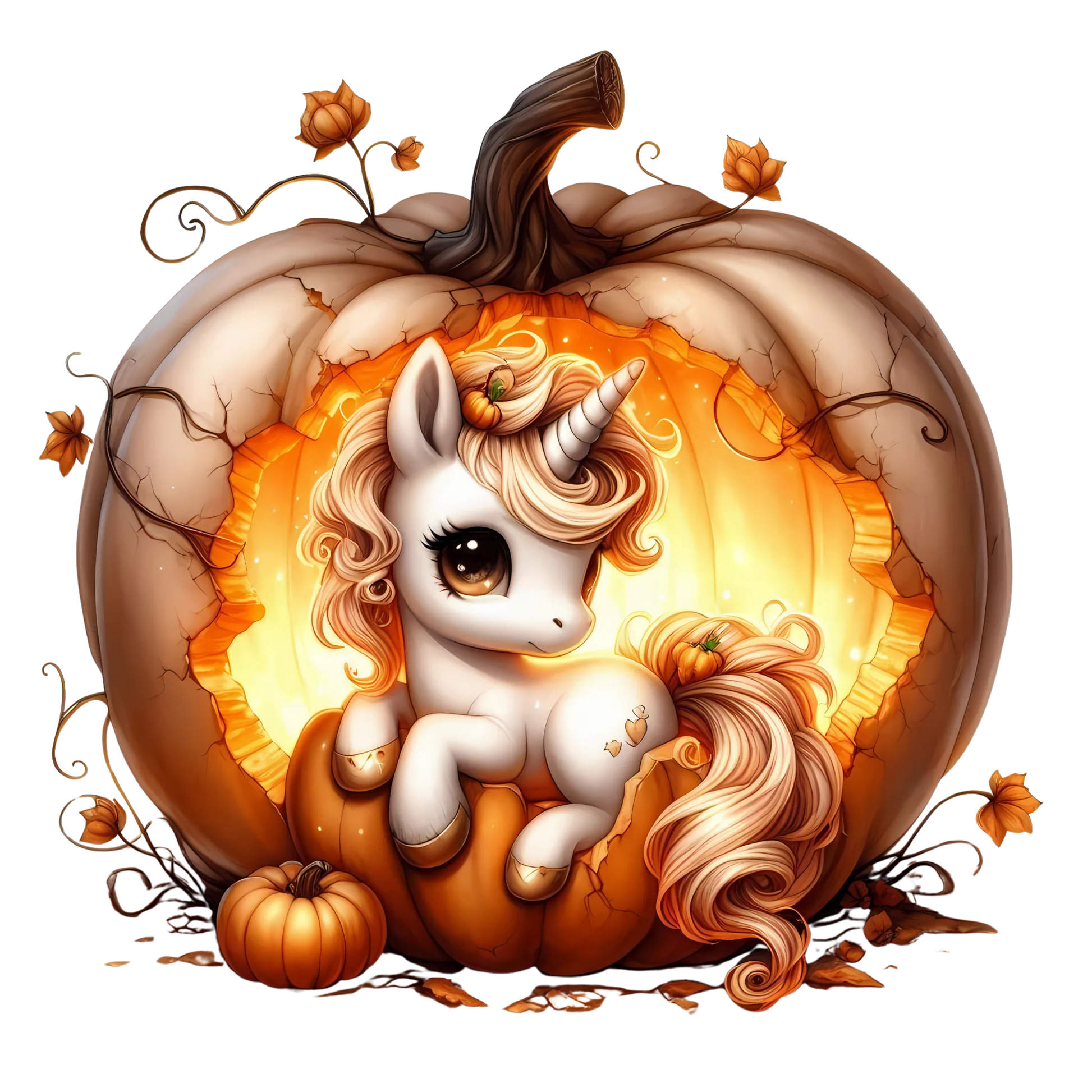 Auktion - Bügelbild - Einhorn Kürbis 8 - 15cm