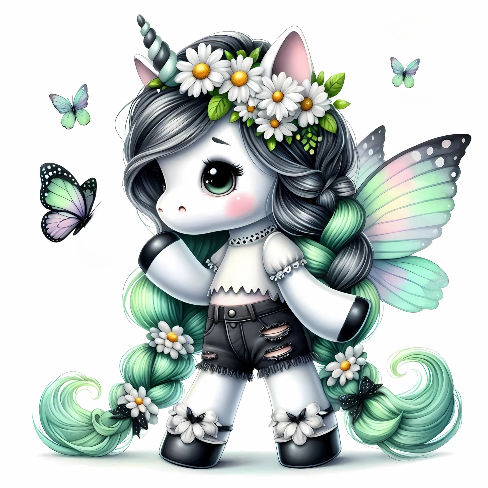 Auktion - Bügelbild - Einhorn Schmetterling 36 - 15cm