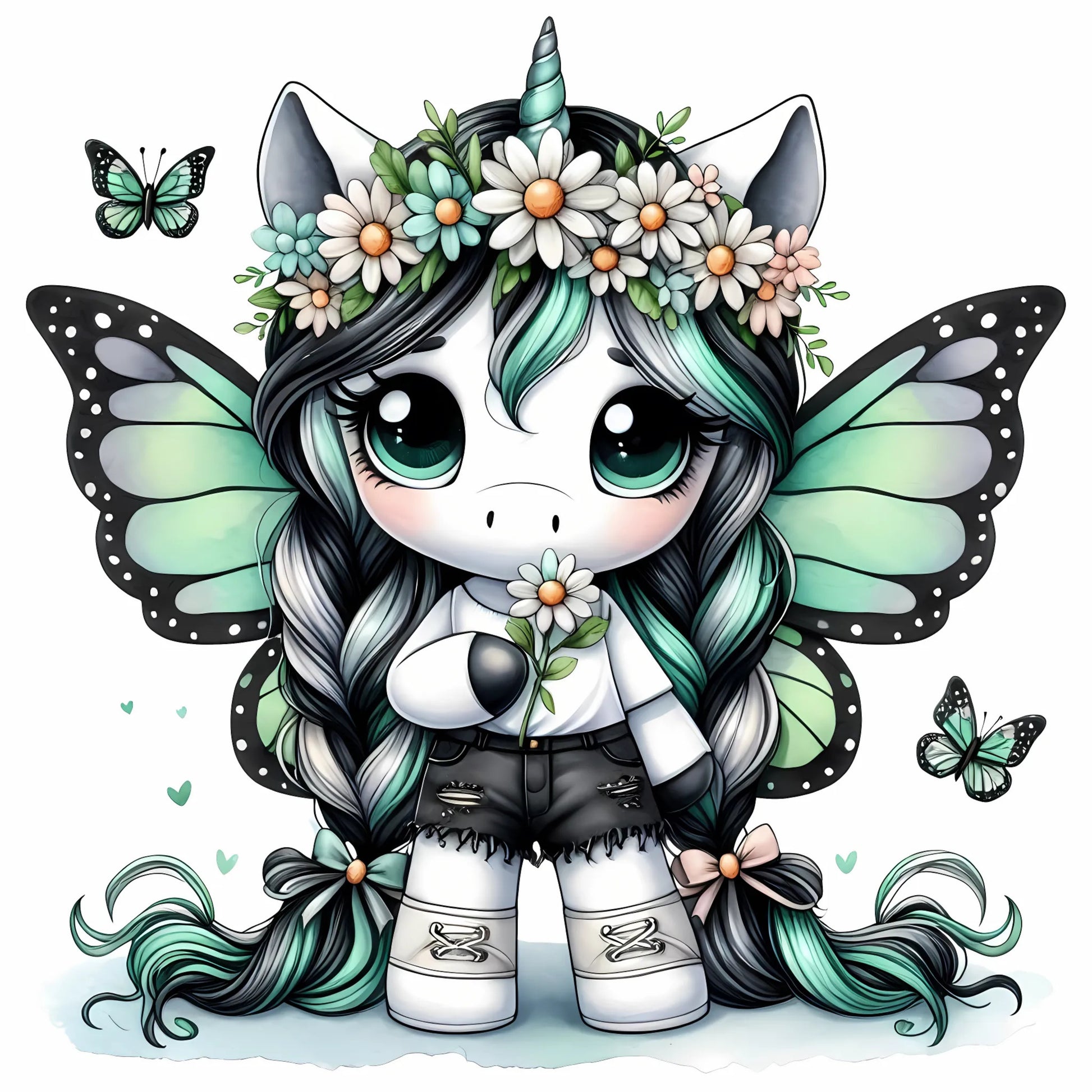 Auktion - Bügelbild - Einhorn Schmetterling 39 - 15cm