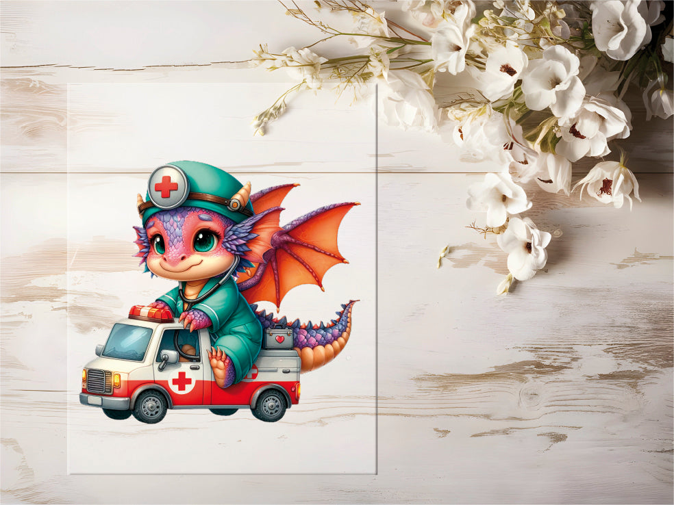 Auktion - Bügelbild - Arzt Drache #0417 - 20cm