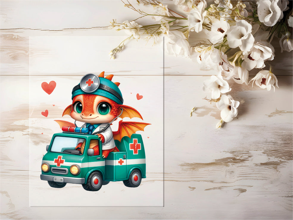 Auktion - Bügelbild - Arzt Drache #0424 - 20cm
