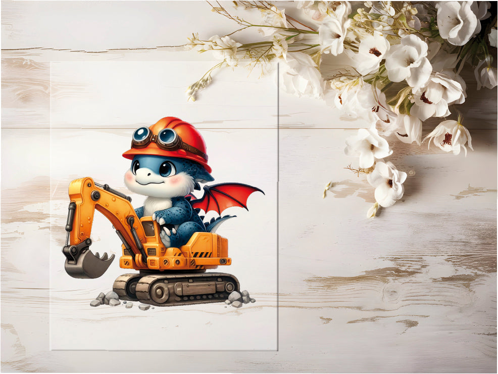 Auktion - Bügelbild - Baustellen Drache #0408 - 20cm