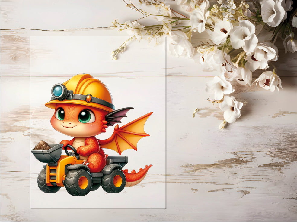 Auktion - Bügelbild - Baustellen Drache #0412 - 20cm