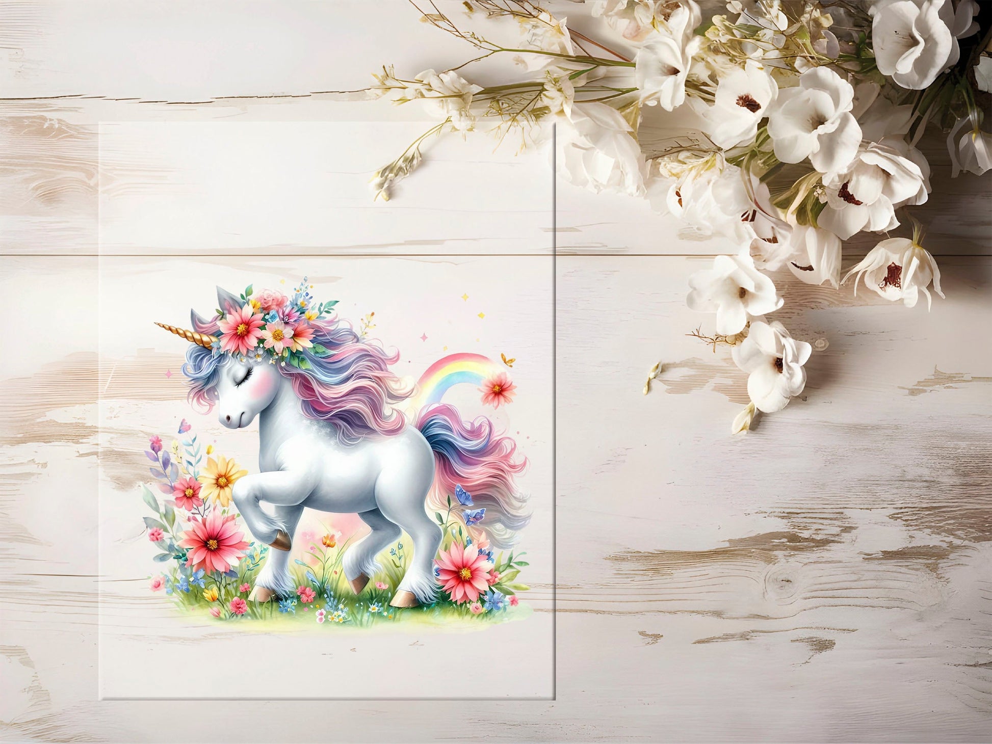 Auktion - Bügelbild - Einhorn Blumen #1277 - 15cm