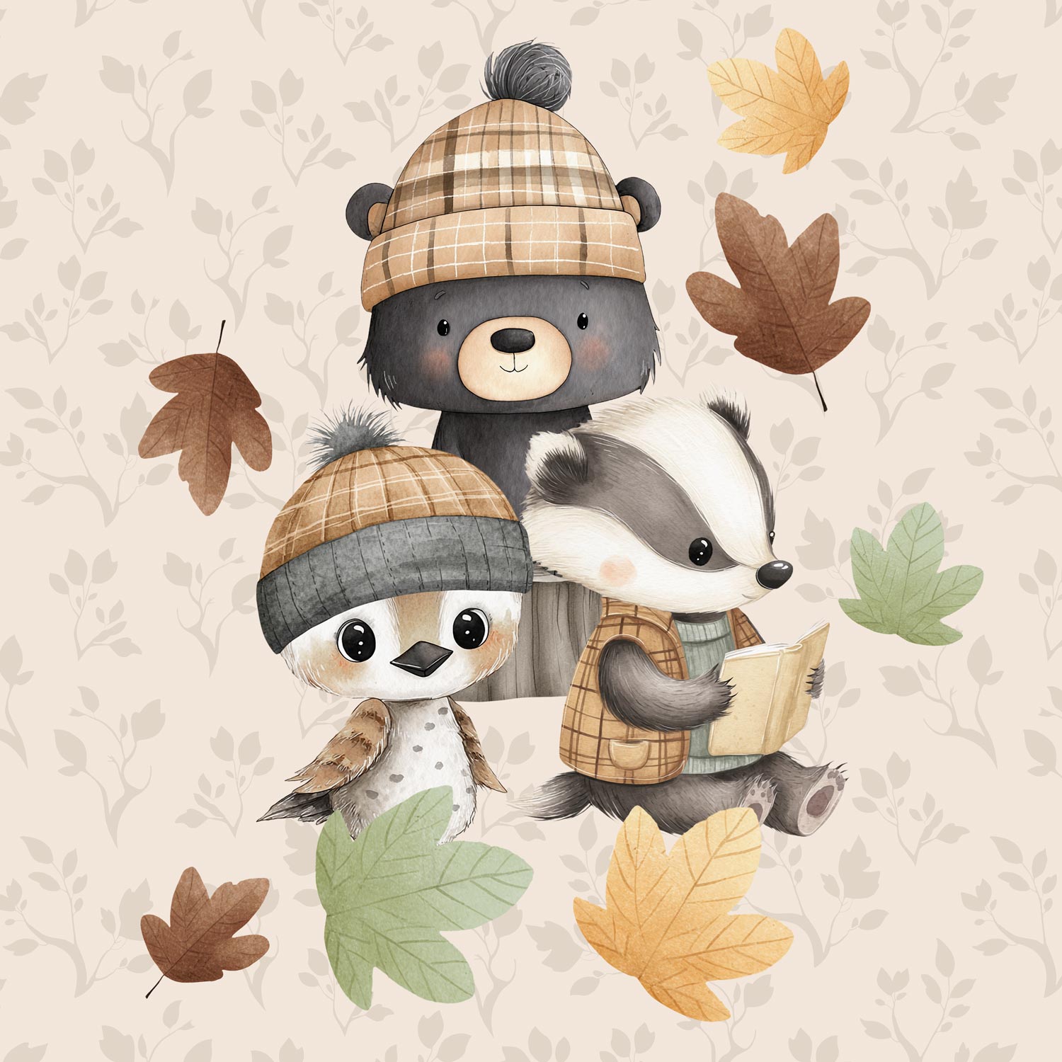 Sommersweat - Panel - Süße Herbsttiere Gruppe