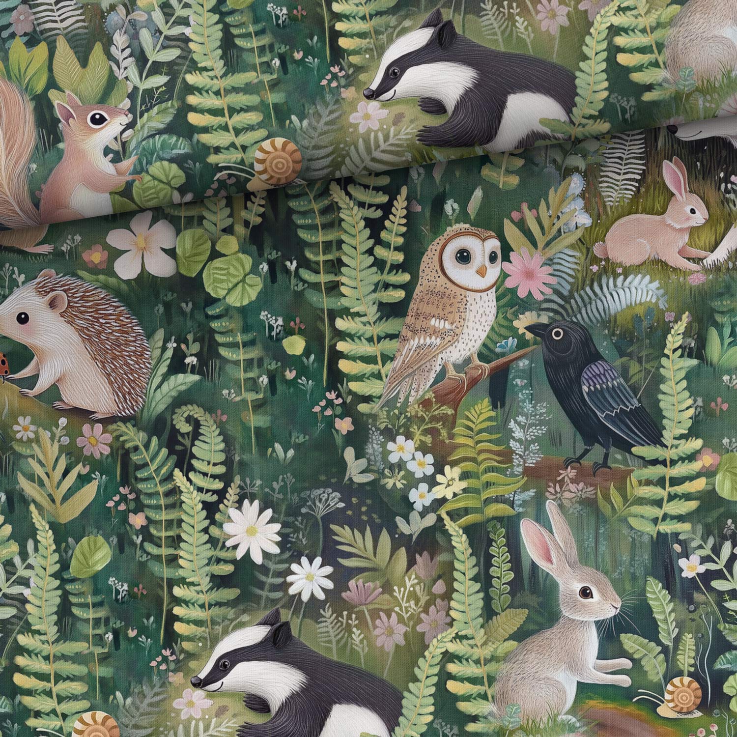 Sommersweat - Waldtiere Bilderbuch Grün Allover